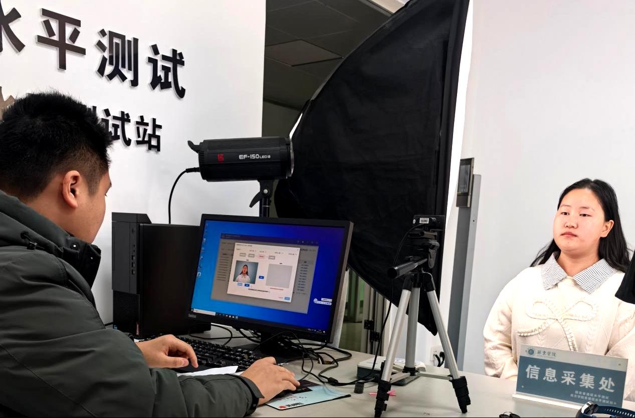 测试站站长曹艳艳介绍,为保障升级后的首次测试顺利进行,学校在考前组织了多轮系统调试与全流程模拟演练,确保设备运行稳定、环节衔接顺畅。测试期间,考生从签到入场、系统叫号、备考引导到完成测试,全程秩序井然,新环境和新系统为考生提供了良好的应试体验。