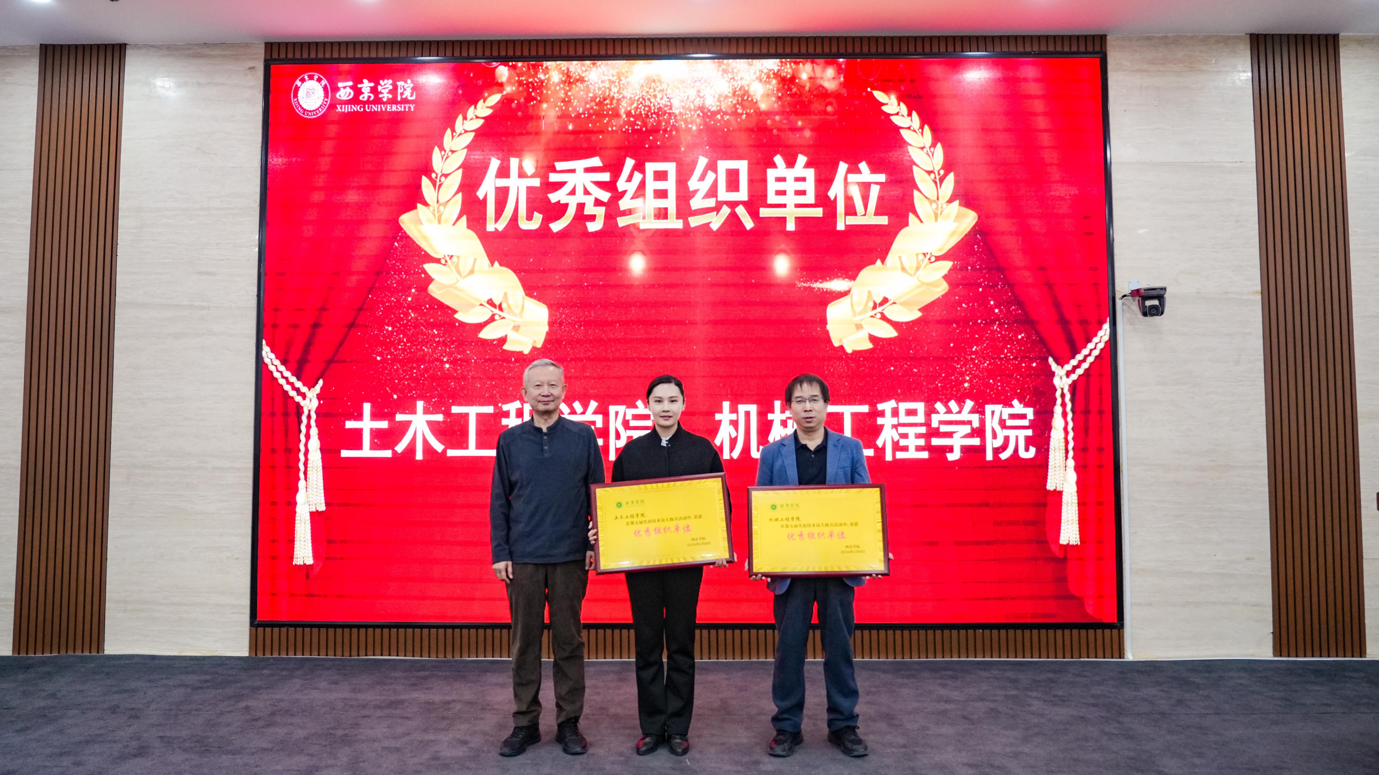 表彰颁奖环节,总督学王正斌为本届实验技术员大练兵优秀组织单位土木工程学院、机械工程学院颁发奖牌;副校长谢明、科研处处长赵玉真为杨海鹏、高博等11名优秀实验技术员颁发荣誉证书。