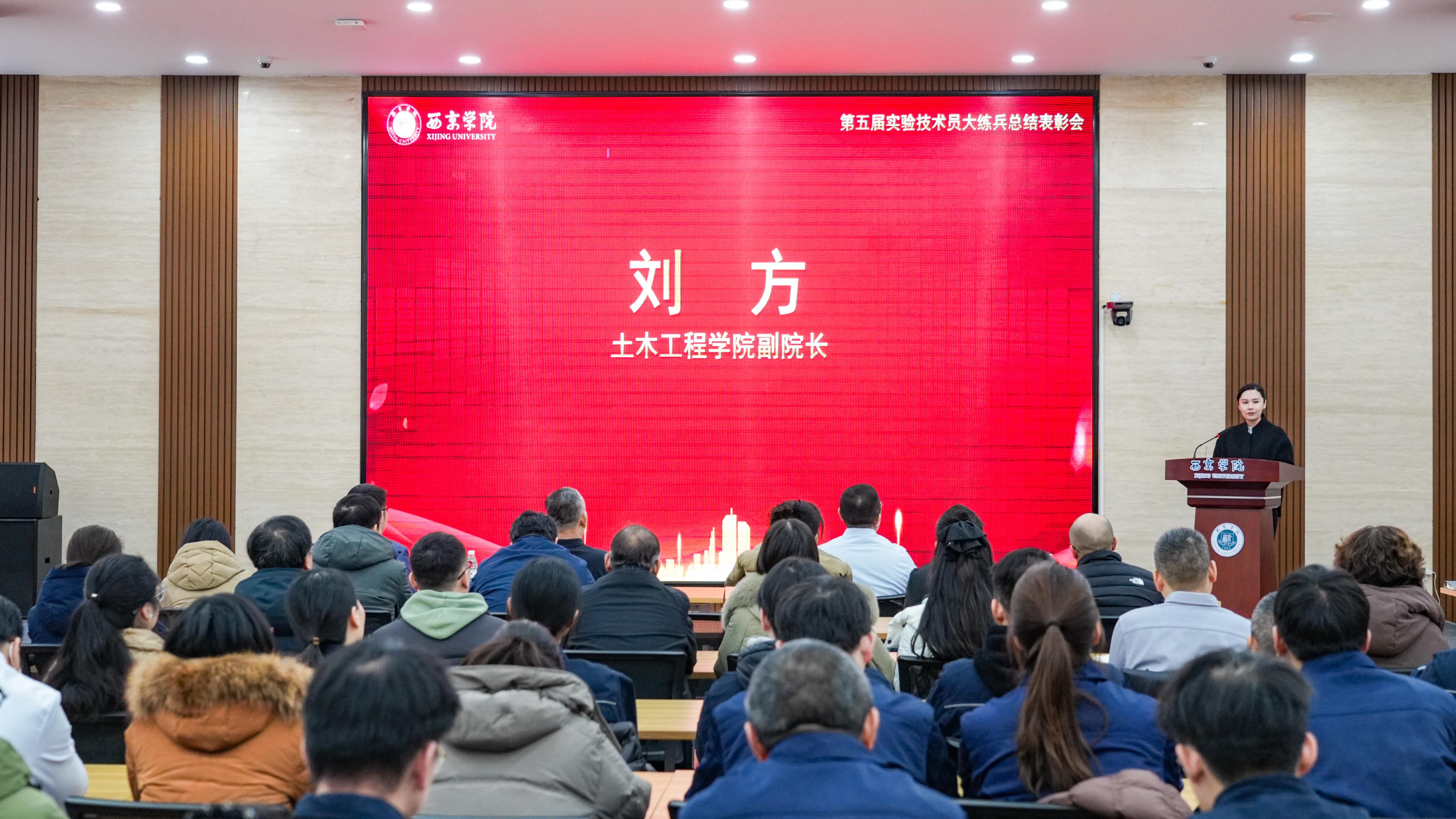 土木工程学院副院长刘方代表优秀组织单位发言,刘院长表示荣获“优秀组织单位”这份殊荣,不仅是对学院在大练兵活动中表现的肯定,更是对实验室全体技术人员长期付出、追求卓越的集体褒奖。通过大练兵活动,学院深刻的体会到以下四点:一是“安全”是实验室不可动摇的生命线;二是以“管理”提升效能,保障有序运行;三是以“创新”驱动发展,激发技术活力;四是凭“实操”彰显实力,激发技术活力。
