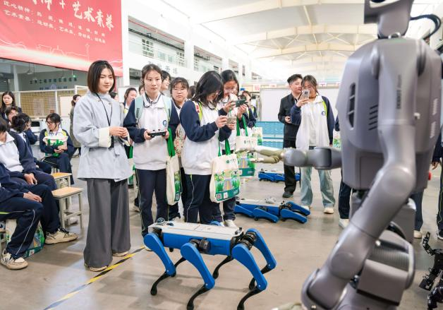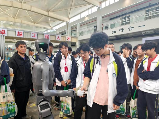 在机器人创新实验室,学生们通过零距离沉浸式体验,深入了解具身智能、智能视觉、智能制造、智能建筑、智能工业五大平台。同学们亲手编程、调试参数,操控机械臂完成写字画画、精准抓取、智能分拣、码垛堆叠等操作,真切感受到工业自动化的精准与高效。六足巡检机器狗与人形机器人引爆了现场氛围,它们灵活执行行走、越障、姿态调整、复杂地形适应等指令,在互动操控中让大家直观领略到AI机器人的运动控制与环境适应能力。在智能工业实验平台,师生们还观摩了智能管道检测、自动化装配、激光雕刻、木结构加工等全流程智能制造演示,近距离了解3D打印、氢能储运预警、空地协同等前沿科研装备与技术成果,充分感受到人工智能技术的创新魅力。